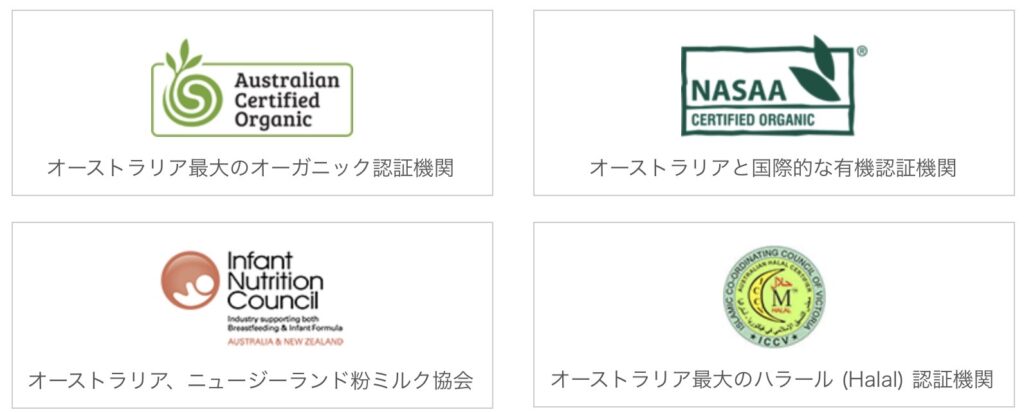 こちらも多くのオーガニック認定機関からの認定を受けた、信頼できるオーガニック粉ミルクになっています!