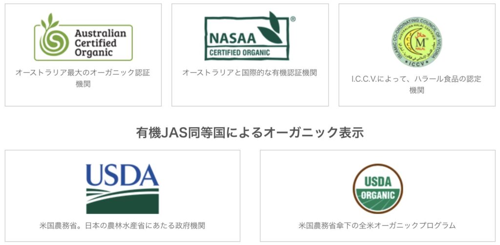 オーガニック認定もオーストラリアの機関の認定だけでなく、アメリカのオーガニック認定機関にも認定されているのも大きな特徴です。